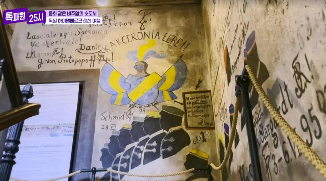 하이델베르크 대학교 건물 뒤편으로 돌아가면 하이델베르크 대학교와 관련한 특별한 공간이 있은데 그곳은 바로 학생감옥입니다. 1914년까지 치외법권 지역이었던 대학교는 교육의 자주성과 존업성을 보장받기 위한 목적으로 대학에서 직접 학생들을 징계하는데 쓰인 학생 감옥입니다. 늦은 밤까지 술을 마시거나 범죄를 저지른 학생을 구금하는 곳으로 최소 이틀에서 최장 4주까지 수감이 가능했다고 합니다. 진짜 감옥만큼 힘든 건 아니고 나름 자유로운 생활이 가능했으며 일부러 땡땡이를 치려고 들어오기도 했던 곳으로 학생들 사이에서의 감옥은 안 가봤으면 이 대학 학생이 아니다.라는 일종의 성인식이었다고 합니다. 감옥의 입구부터 즐비한 벽화들로 이곳에 갇혀 있던 학생들이 그린 그림이 2천여 점이 있으며 현재 복원 작업이 진행 중이라고 합니다.