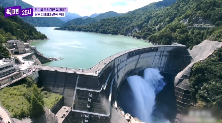 일본에서 1470m 가장 높은 곳에 있은 댐으로 유명하며 높이 186m 길이 492m 저수량은 2억 톤으로 방류시기에는 초당 10톤의 물이 방류되는 장관을 볼 수 있으며 댐 사이로 피어난 예쁜 무지개도 볼 수 있는 곳입니다.