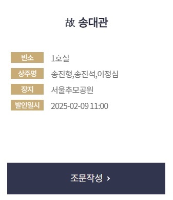 빈소는 서울대학교병원 장례식장 1호실이며 발인은 9일오전 11시 이다. 장지는 서울추모공원이다.