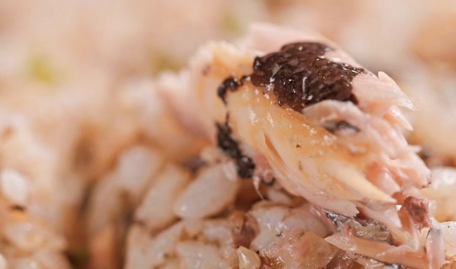 2. 꽁치 3조각과 꽁치 국물 약간을 넣고 꽁치를 으깨면서 버터 향을 입혀 볶아준다.